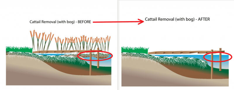 - Cattails obstruct docks, strolling paths, fishing access, and shoreline maintenance.